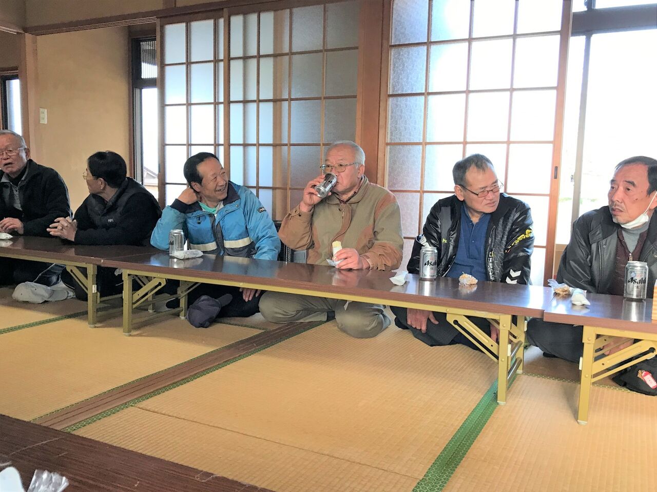 豆まきの後は直会(なおらい)でした。いつものように缶ビールと松富かまぼこの竹輪でした。
