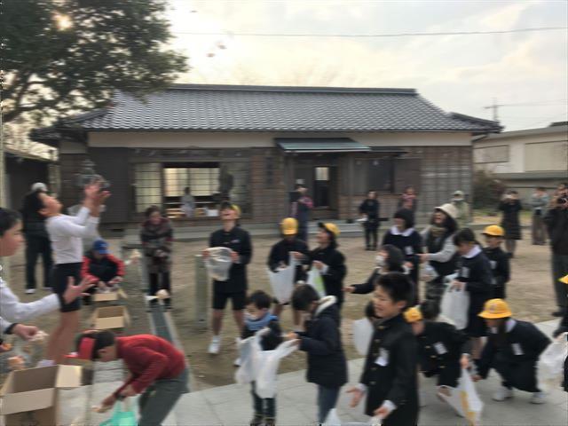 最初は子供向けの豆まきです。今年は5,6年生が豆をまきました。