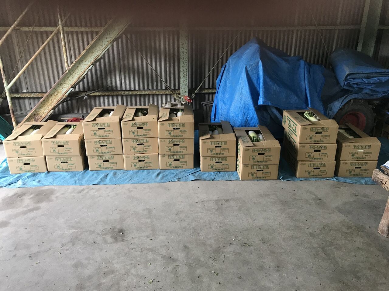 収穫数は約350本だったのですが、小さいものが多かったので箱数は22箱でした。規格外の小さいものや傷んだもの、ヒビが入ったものが多くて収穫かご5個分が出荷できませんでした。