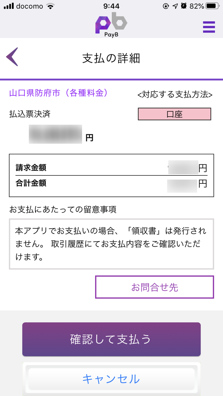 「確認して支払う」で支払いが完了します。