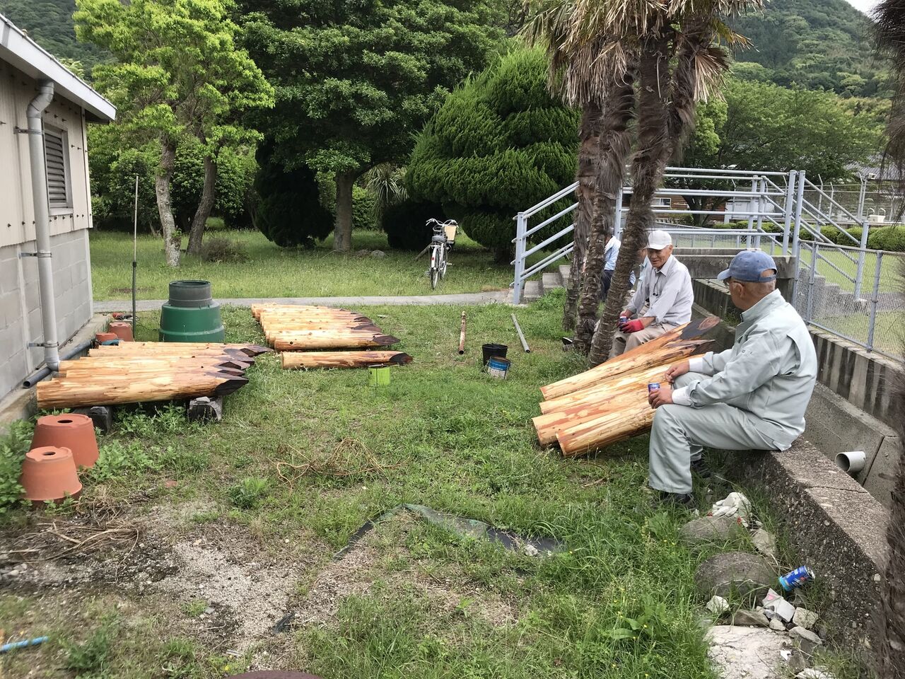 先日、保存会会長から「桜の周りの木杭が傷んできたので、交換用木杭の穴開けをやるので手伝って」と頼まれました。