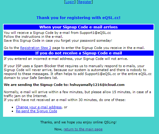 eQSL.ccの登録完了後1日してから、過去にQSOした局からの電子QSLを確認できるようになりました。