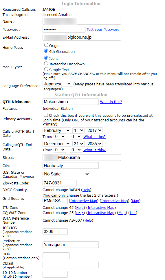 QTH Nickname は適当な地名を入れてください。JTDXやJTAlertのeQSL自動発行で使うので、メモしておいてください。