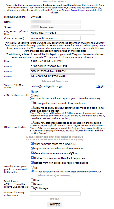 なお、私は紙のQSLと同じ画像を使いたいので、12ドル(年間)を支払ってブロンズメンバーになっています。