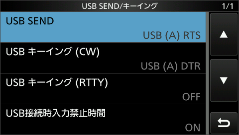 ・「MENUボタン」→「SET」→「外部端子」→「USB SEND/キーイング」