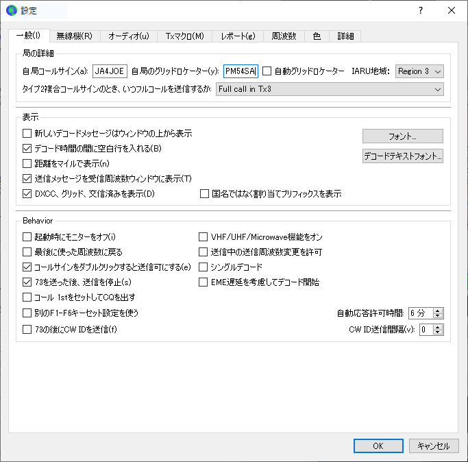 IC-7300の設定が引き継がれているので、異なる部分のみ変更します。なお、新規に設定する場合は IC-7300 + WSJT-X2.2で FT8 運用開始 5. WSJT-Xの設定 を参照してください。