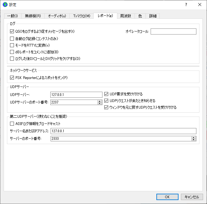 JTAlertを使わない場合はUDPサーバーの3か所のチェックは外してください。
