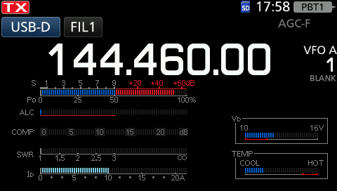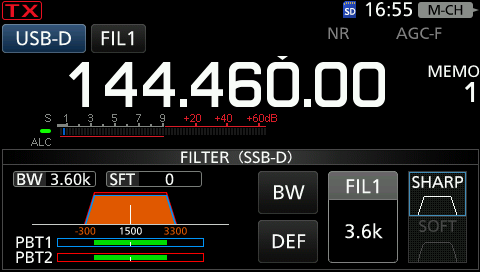 ・「MENUボタン」→「SET」→「トーンコントロール/送信帯域幅」→「送信」→「SSB-D」