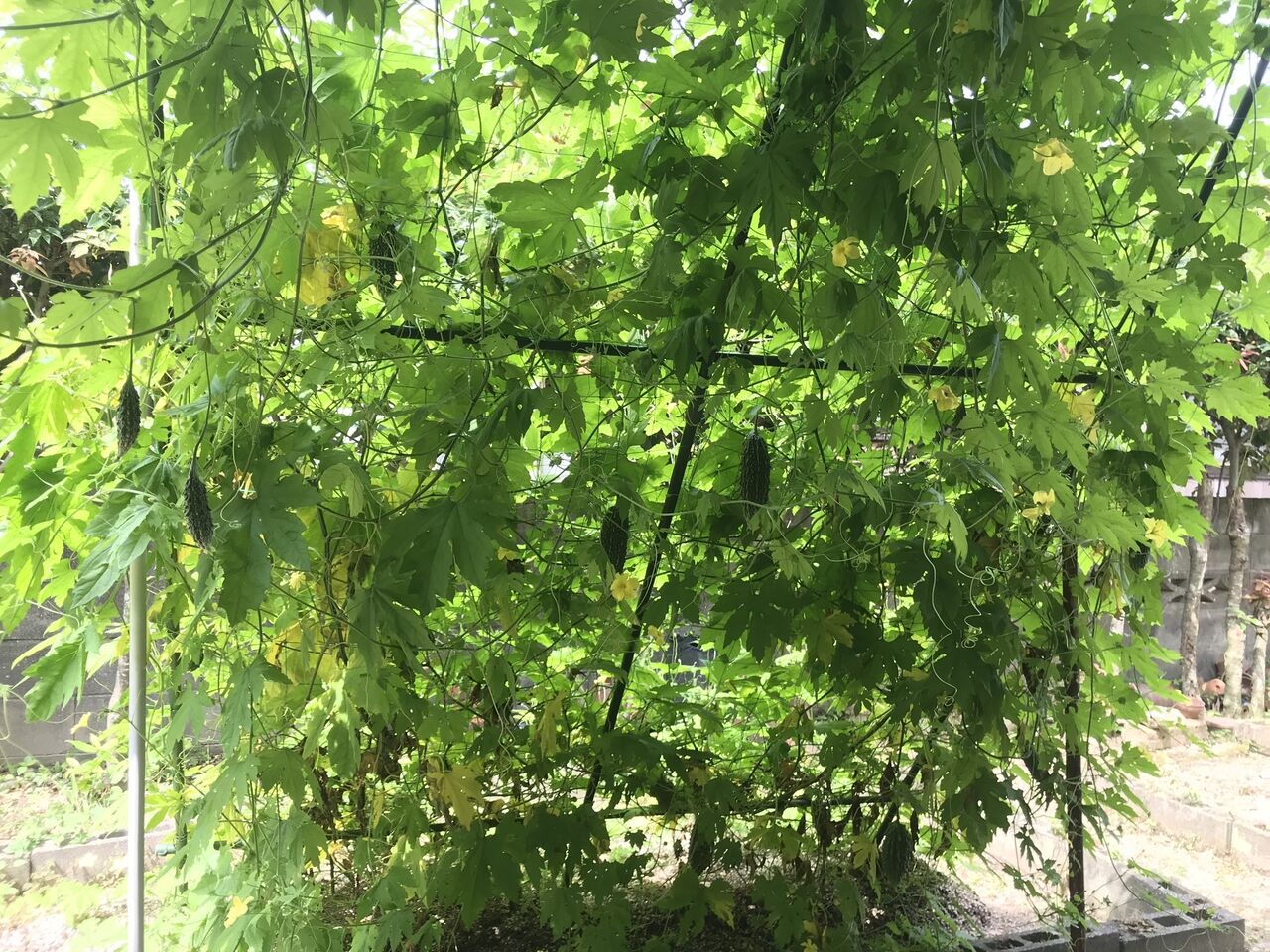 自宅畑のゴーヤはしっかり緑のカーテンになりました。