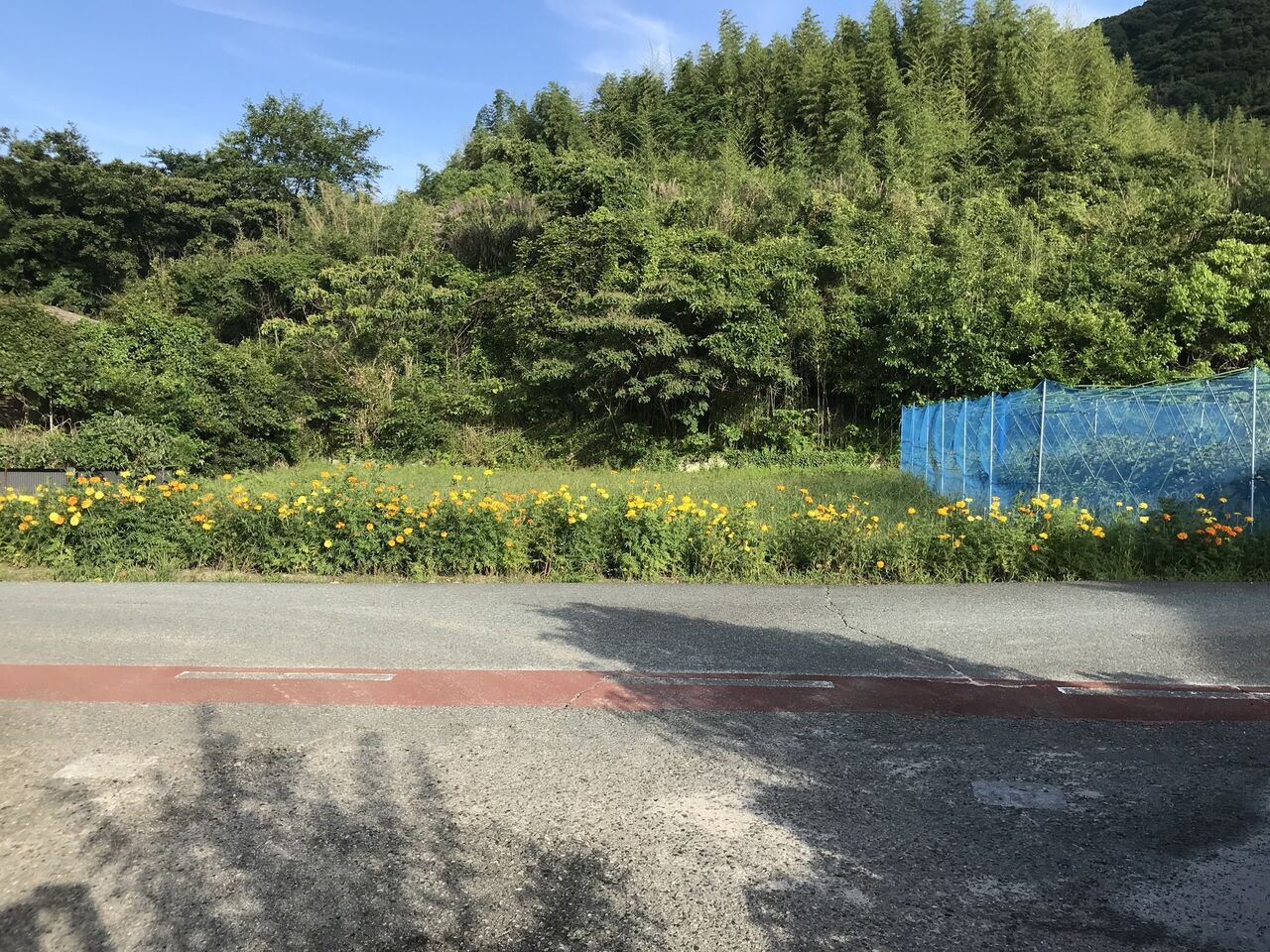 道路沿いのマリーゴールドは引き続き元気に咲いています。ヒマワリは雨で駄目になりましたが、マリーゴールドは丈夫ですね。