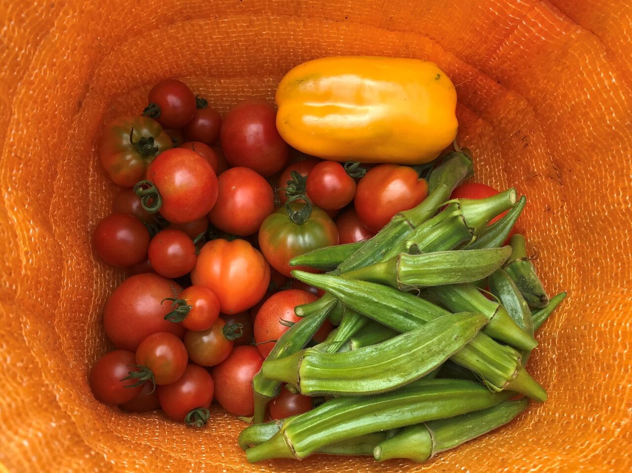 東側畑 金ウリ、ニンジン、エダマメ、トマト、パプリカ、オクラ