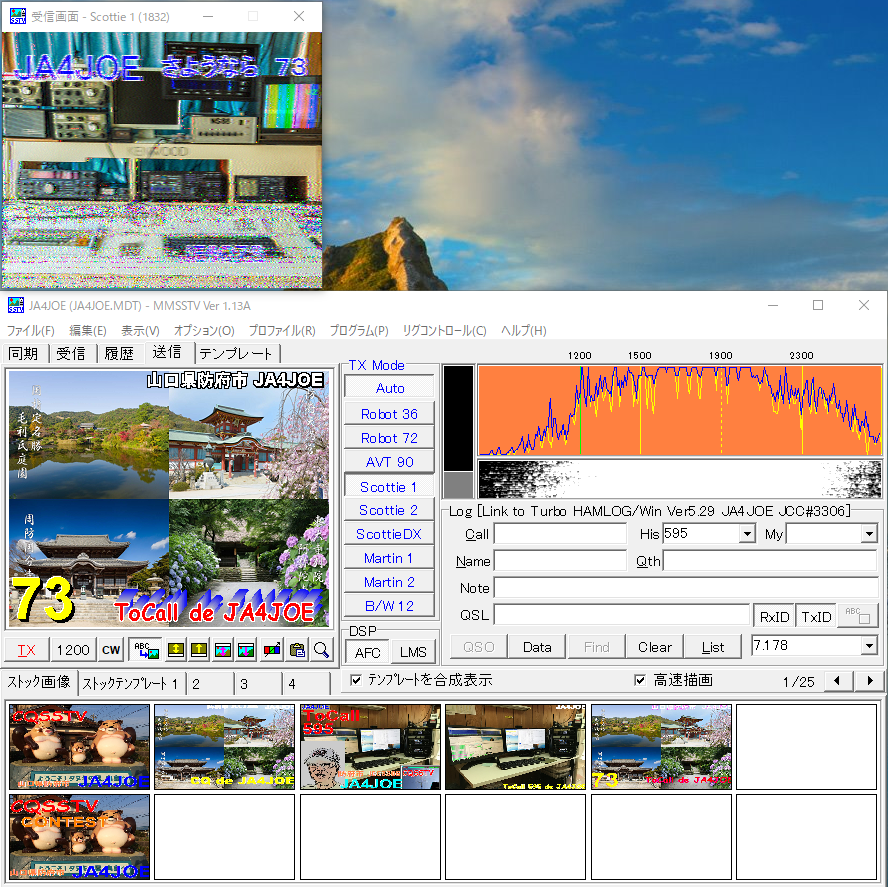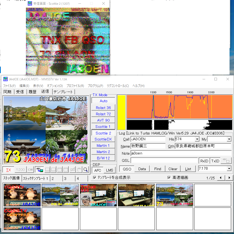 MMSSTVのインストール、設定後に7.175MHz付近をワッチしていたら、7.178MHzでQSOしている局がありました。