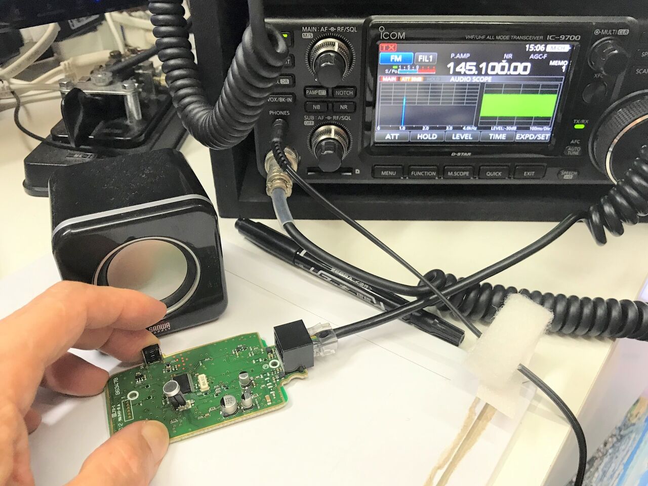 余ってる中華製マイクをつなごうかとも思ったのですが、HM-151はコネクタがモジュラーコネクタなのでケーブル作りが面倒です。