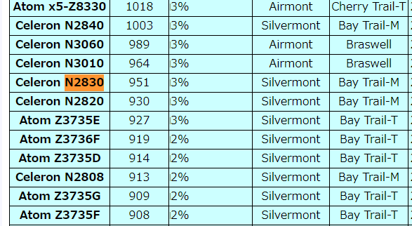N2830はCPUスコアが951でかなりの遅さです。(^^;