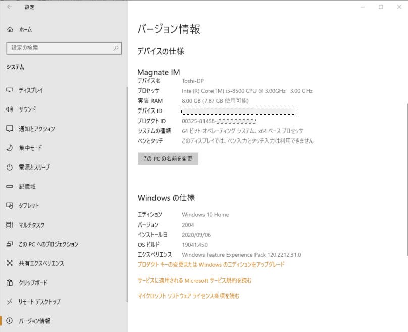 しばらくWindows10 2004を使ってみて、何か問題があれば報告します。