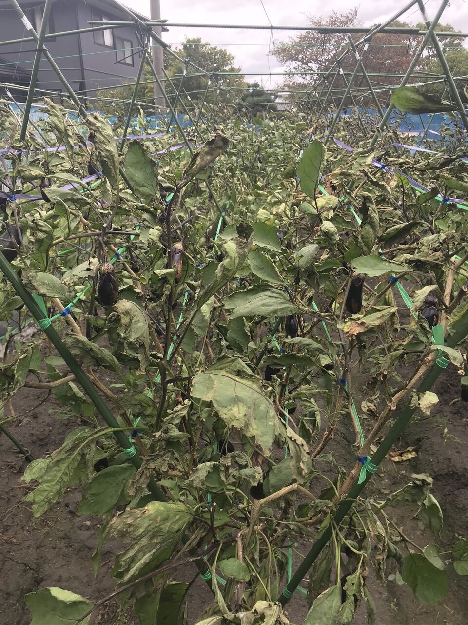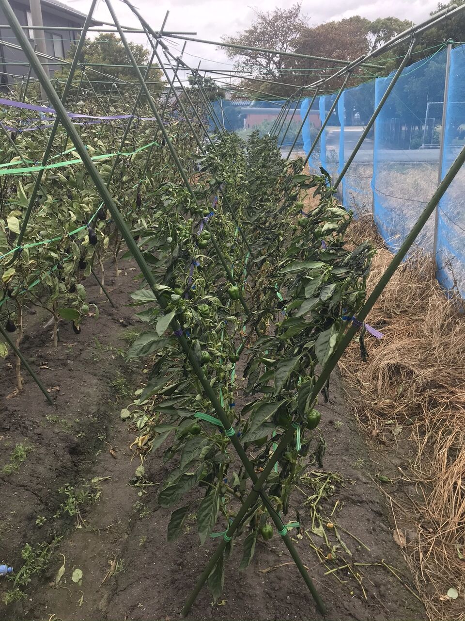 ナス、ピーマンも潮風が当たったようで水をかけても駄目で、葉が枯れて落ちてきました。