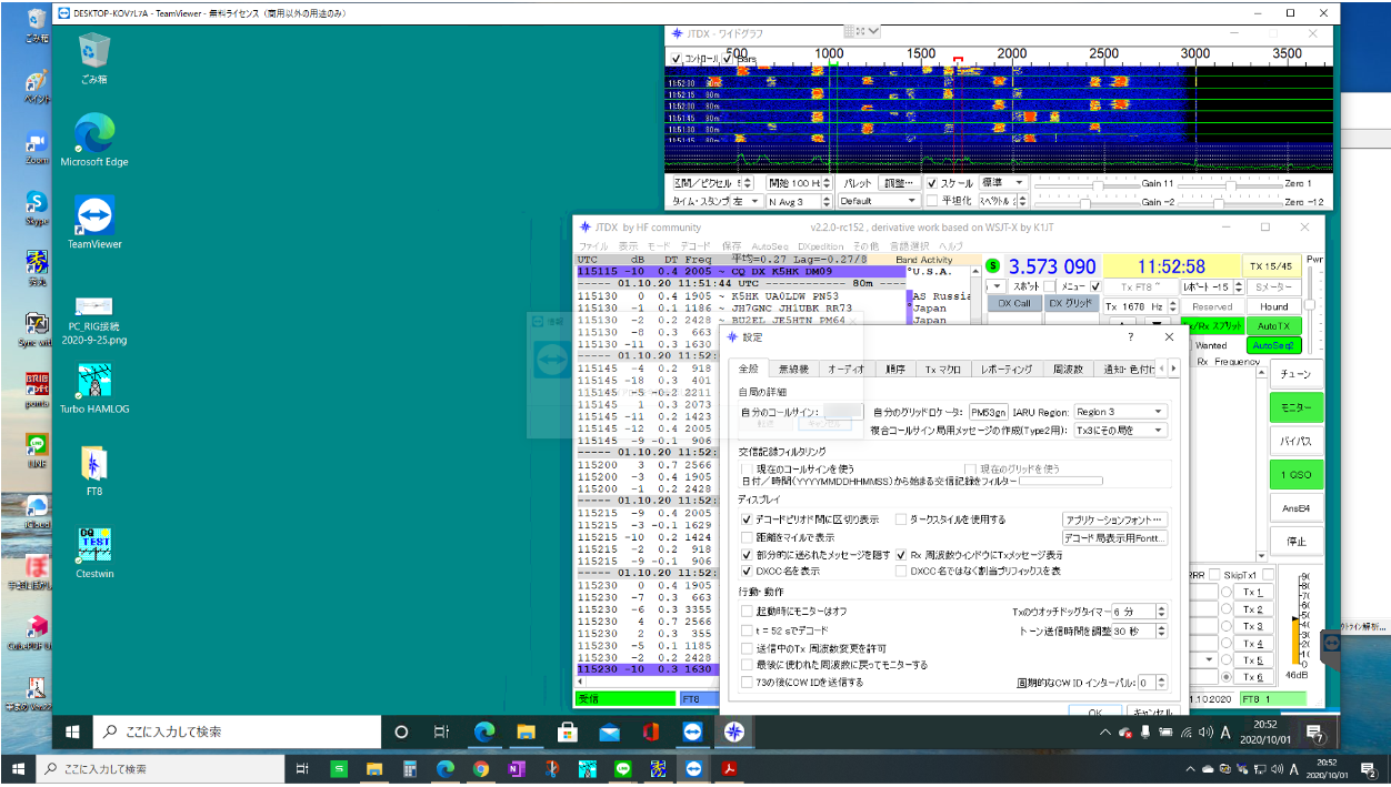 FT8設定作業はLINEでビデオ電話をつないで、TeamViewerでリモート接続して先方のパソコン画面を見ながらやりました。