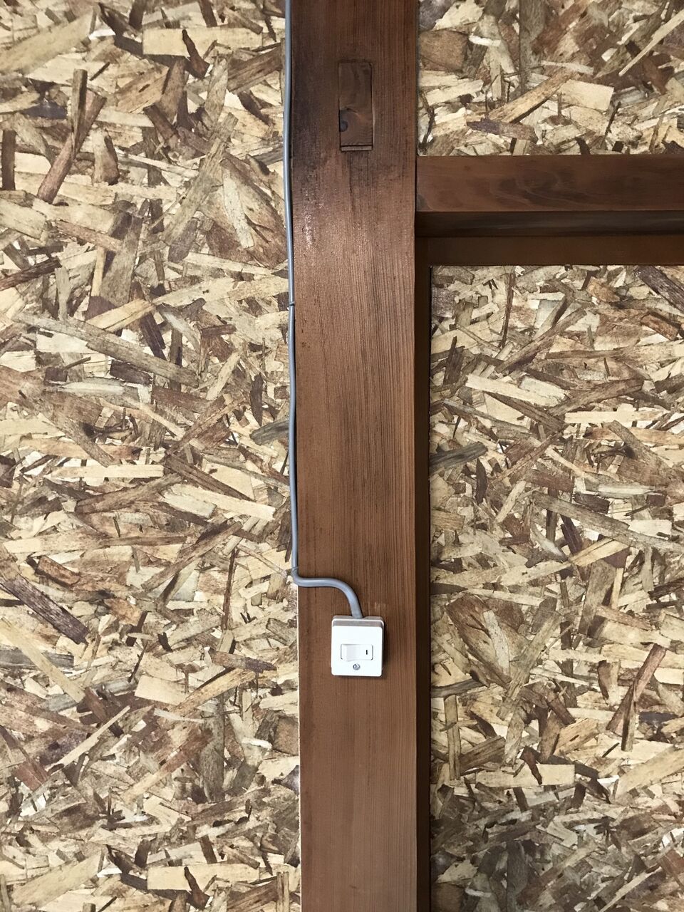 杉板に電源コンセントを取り付けました。あまり見栄えが良く無いですね。(^^;
