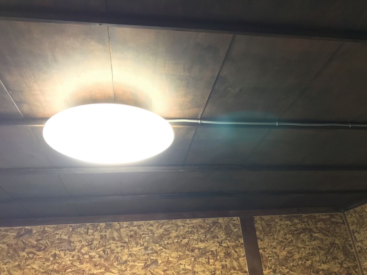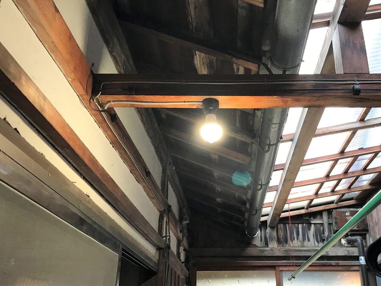 夜、別棟に移動する際に自動的に照明が点くように、土間に人感センサー付きLED電球を設置しました。