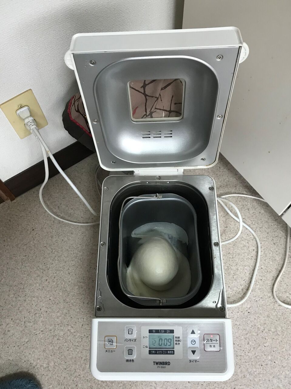 鏡餅は買った正月飾りで済ますので、雑煮に入れる餅くらいは作ろうという事で餅つき機能のあるパン焼き機で搗きました。