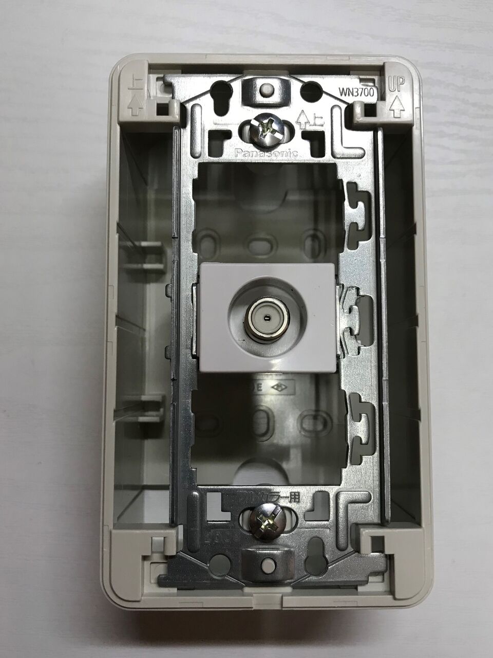 一緒に購入した「取り付け枠WTF3710K」はプラスチック製のものですが厚みがあるので使えませんでした。このため、以前取り外して残していたWN3700Pを使いました。