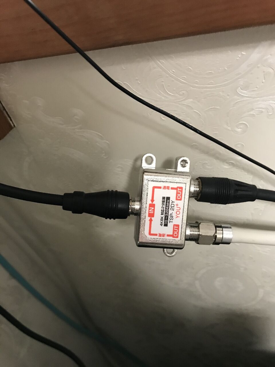 TVアンテナケーブルは客間のアンテナケーブルに分配器を入れて分岐して配線しました。