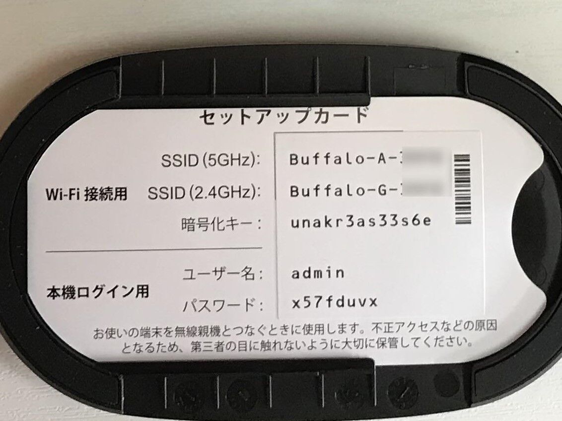 セットアップカードに書いてあるパスワードを入力します。(暗号キー、パスワードは変更したので大丈夫です。)