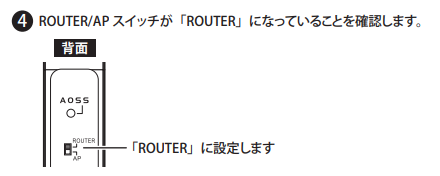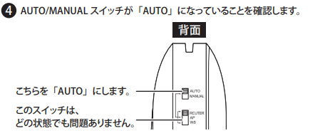 どちらも、後ろに切り替えスイッチがあって、APモードに設定して使用します。(以下の絵はルーターで使う場合の説明ですが、これをAPにします。)