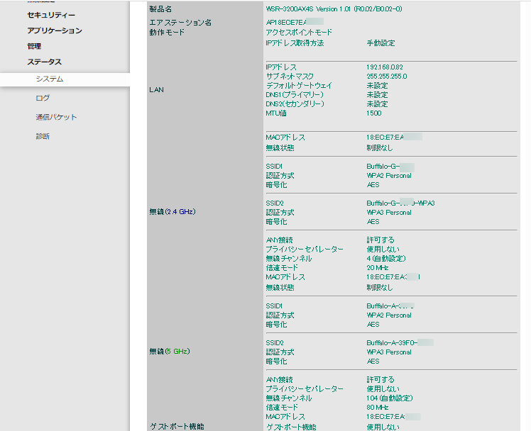 WSR-3200AX4Sがシャック用、WSR-1166DHPL2が別棟用ですが、どちらもNTTフレッツ光回線のルーターに有線接続してアクセスポイント モードで使います。