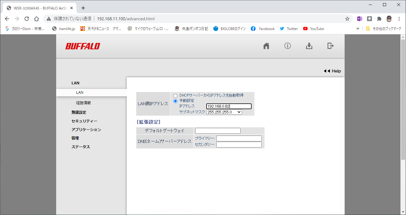 ノートPCとLANケーブルで接続して設定を行います。以下、WSR-3200AX4Sの設定を掲載しておきます。