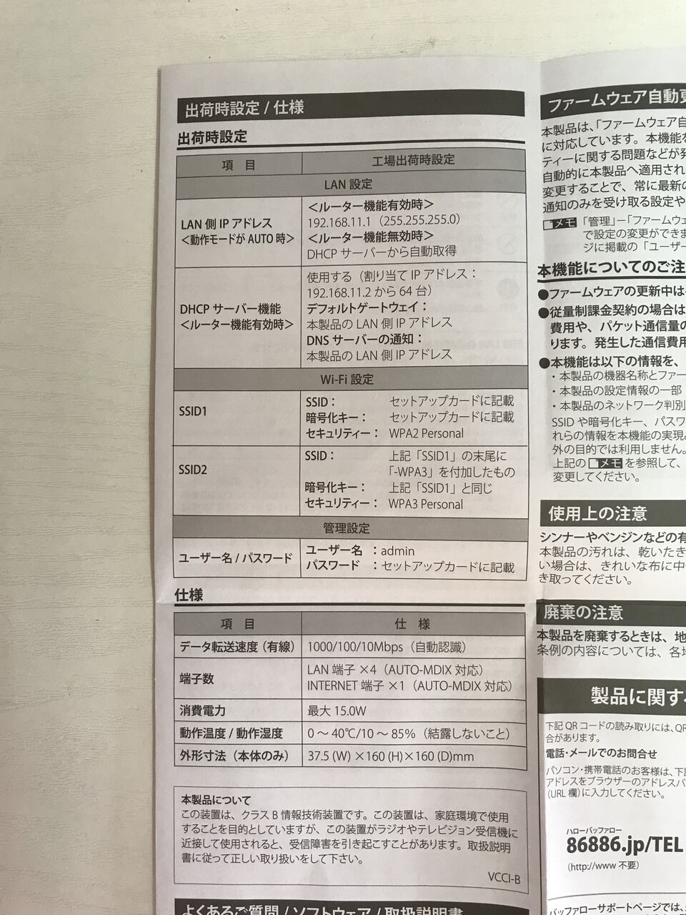 添付されていたセットアップガイドには何も書かれておらず、ネットからユーザーマニュアルをダウンロードしてじっくり眺めたら書いてありました。