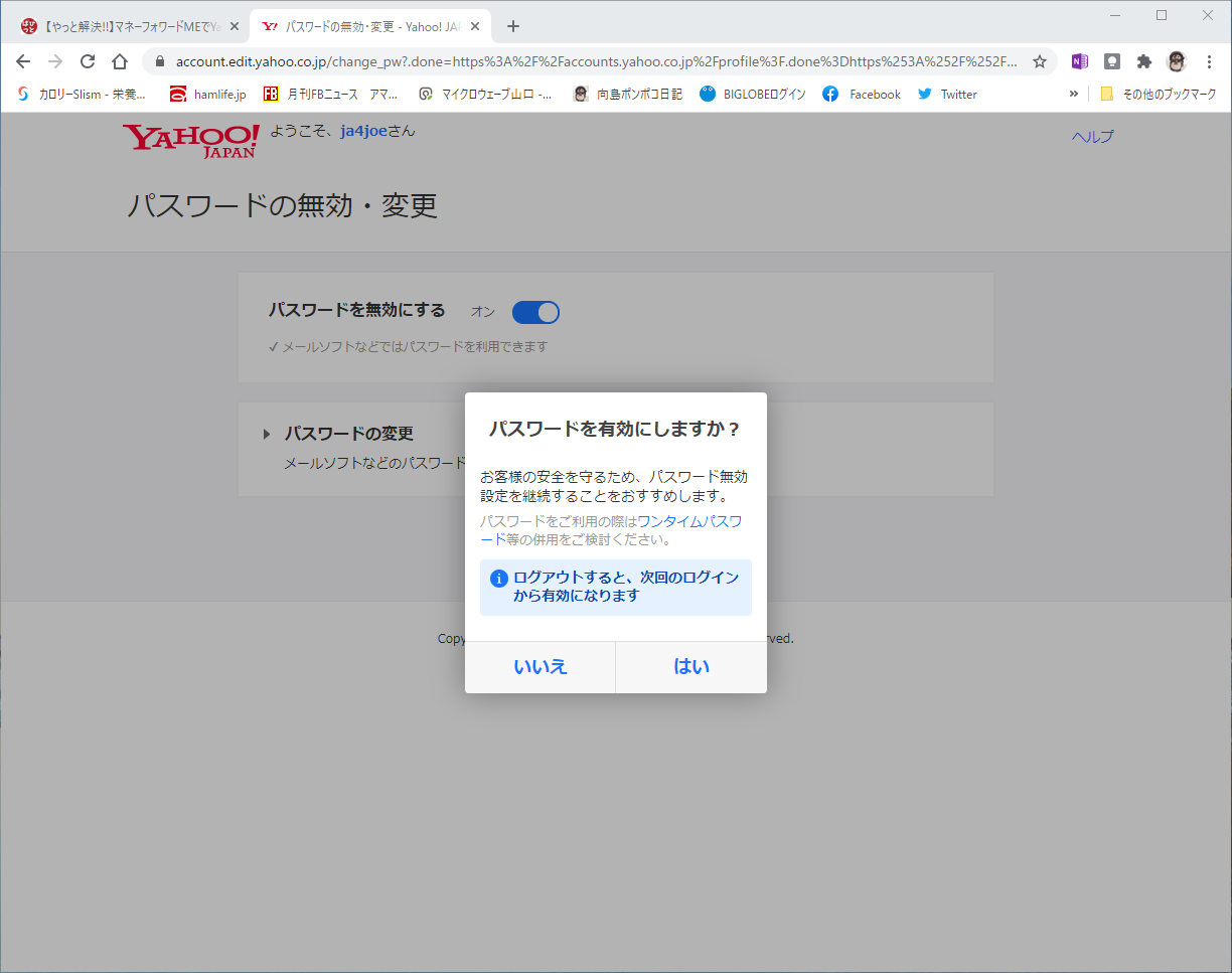 2021年10月追記 Yahoo!の仕様が変わったようで、パスワードによるログインに設定してもマネーフォワードでは確認コードが必要になりました。このため、現在は時々、手動でYahoo!カードの連携操作と確認カードの入力を行っています。