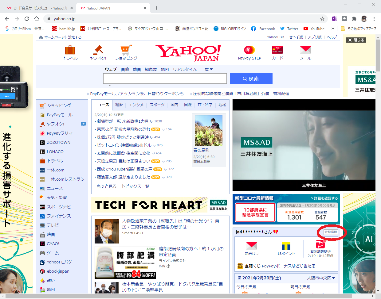 まず、Yahoo! JAPANにログインして[登録情報]を変更します。