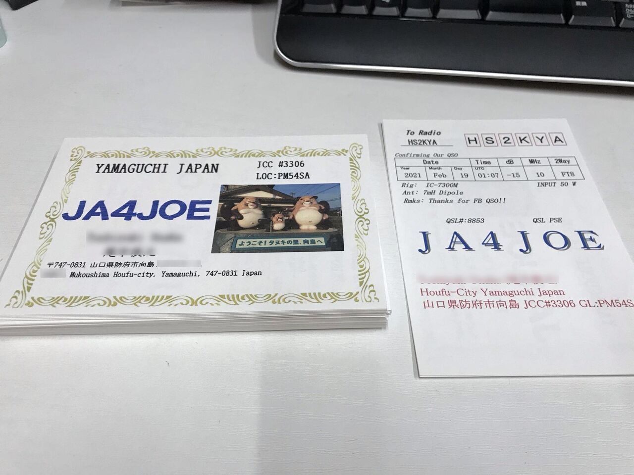 印刷したQSLカードは国内64枚、DX2枚でした。