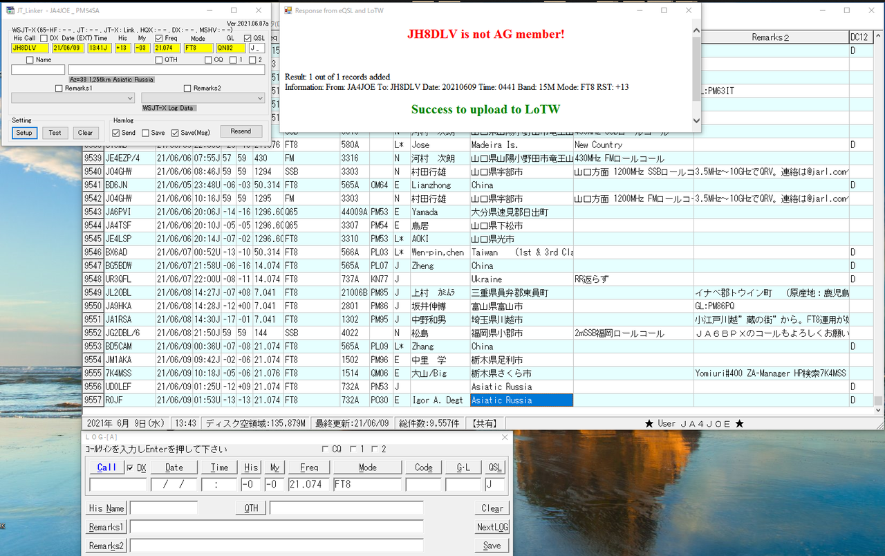 eQSLやLoTWの運用、HAMLOGへの記入方法は皆さんそれぞれやり方が違うのでJTAlertやJT_Linkerですべてをカバーするのは無理なのでしょうね。