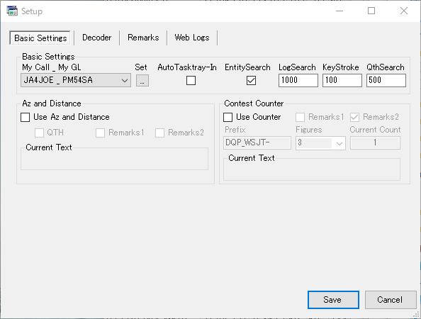 Default QSL Letters QSL欄の一文字目の初期値を設定します。通常は J にしてください。(紙のQSLカードは発行しないという方は N にしてください。)