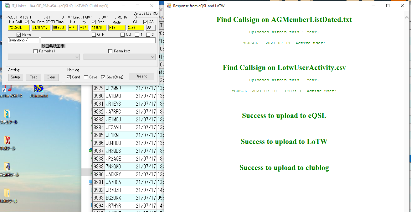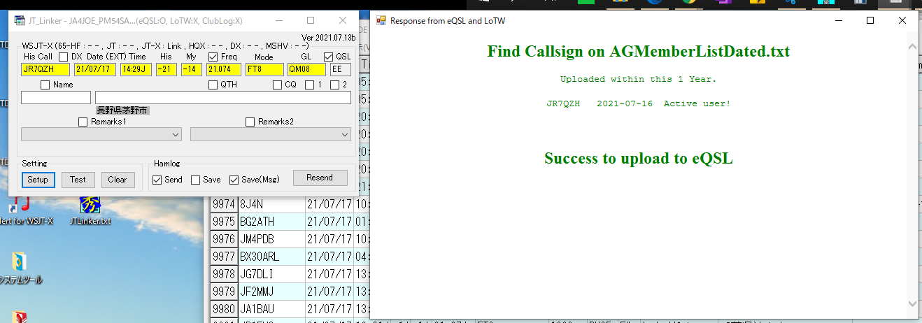 JT_Linkerが進化してJT_LinkerからeQSL、LoTW、ClubLogへのログ アップロードが出来るようになりました。同時に、相手がeQSL、LoTW、ClubLogのメンバーかどうかを判定してHAMLOGのQSL欄に自動記録出来るようになりました。