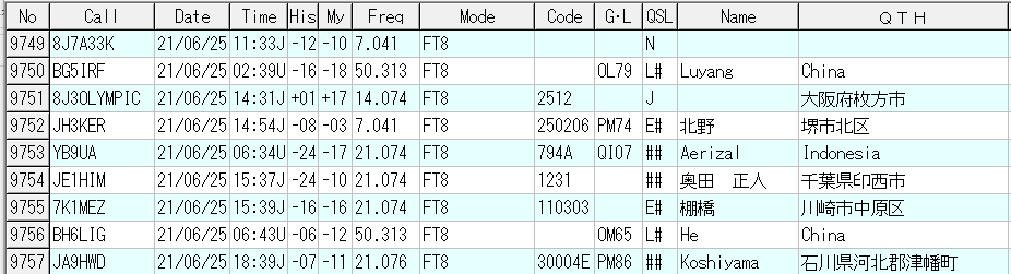 その時は、HAMLOGから出力してコピーしたADIFファイルに漢字が含まれていたために発生していたので、HAMLOGからのADIF出力を[全角を除く]で行えば良いことが分かりました。