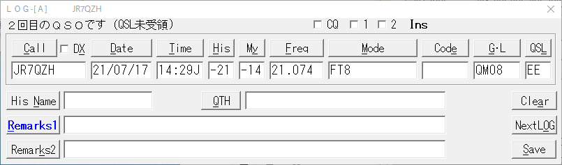 ログ確認画面で「TNX 3rd QSO. 」のようなメッセージを入れる事もできます。