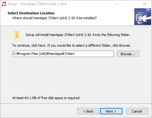(3) ダウンロードした JTAlert.2.50.4.Install.X64.exeまたはJTAlert.2.50.4.Install.X86.exe を実行します。