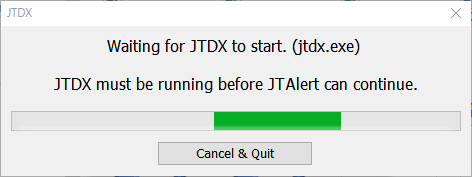 WSJT-X(JTDX)の起動待ちになるので、[Cancel & Quit]で終了させてください。