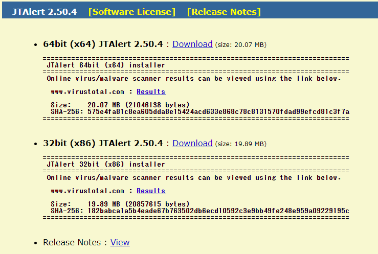 (1) JTAlertを以下からダウンロードします。