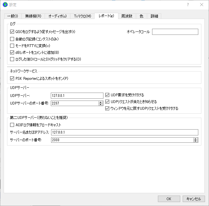 WSJT-Xのメニューバーから ファイル→ 設定→ レポート