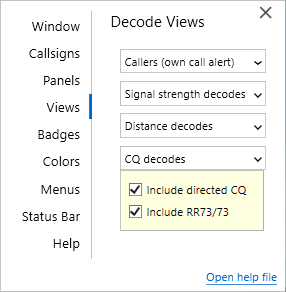 ⑥ のLog FieldsはViewからON/OFFできます。交信相手局コールサインとQRZ.comへの登録情報(Name,QTH)を表示します。