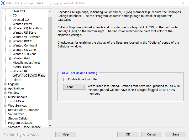 LoTW、eQSLユーザーの表示はJTAlertが、LoTW、eQSLのユーザーリストをHamApps Callsign Databaseに持っていて表示しています。HamApps Callsign Databaseは半月に一回程度更新されています。