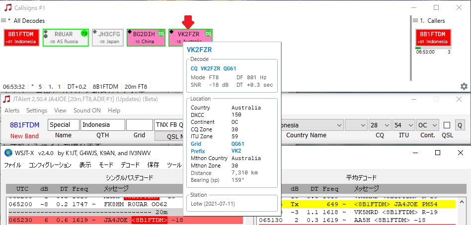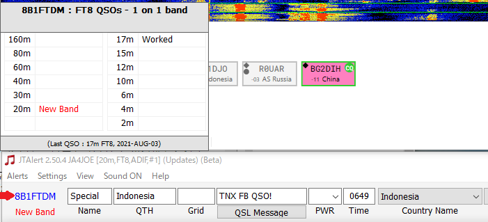 また、Alert表示が分かりやすいので、JTDXやWSJT-Xと一緒に使うと、JTAlertがとても便利なソフトであることは間違いないと思います。