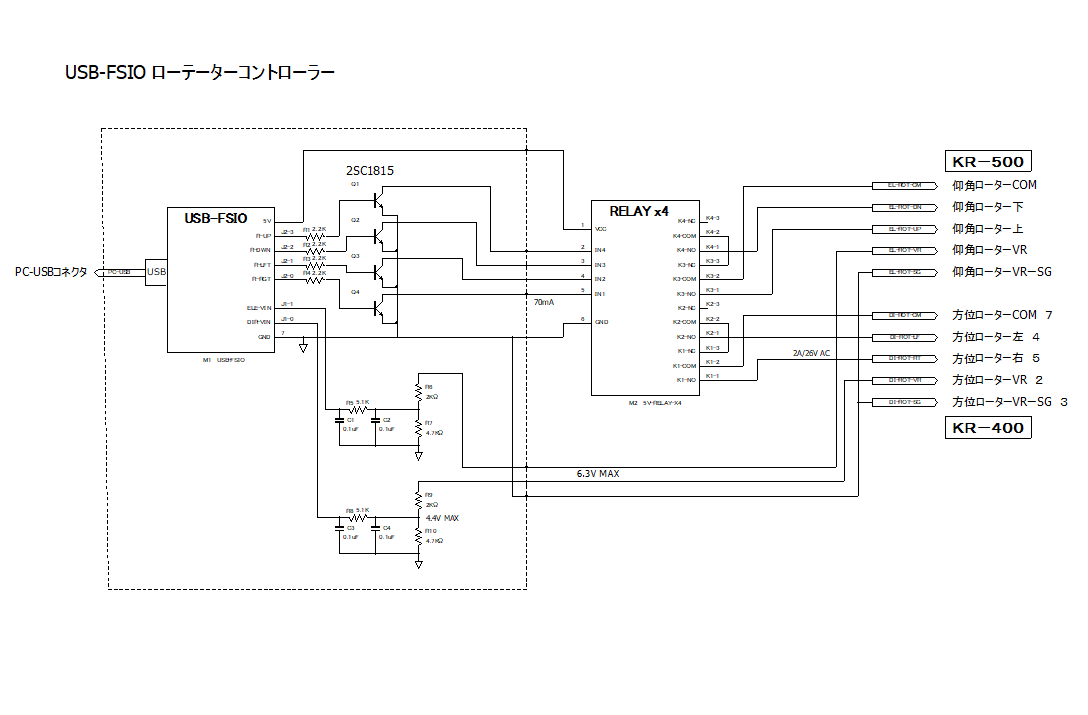 今回、方位角ローテーターしか接続しませんが、仰角ローテーター用の回路も組み込みました。