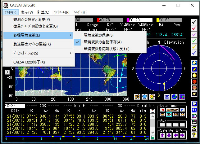 先にCALSAT32の環境変数の自動保存をONにしておきます。