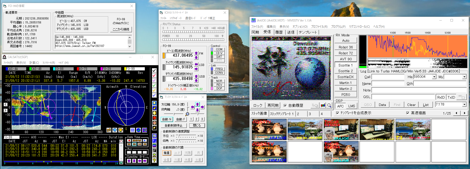 CALSAT32のドップラ補正機能とアンテナ追尾機能を動かして、MMSSTVで画像を受信しました。