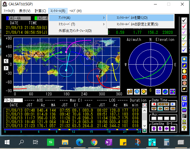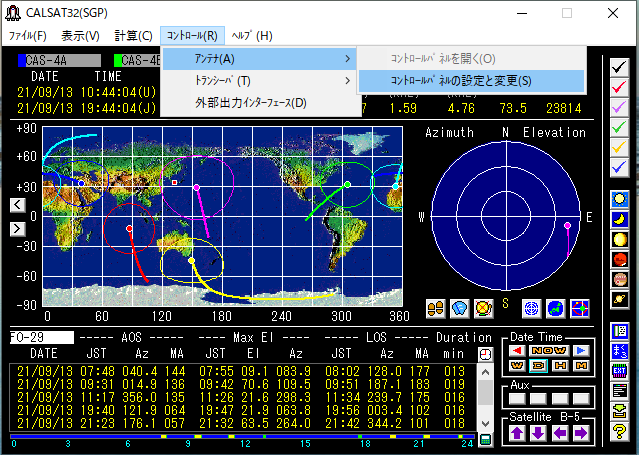 CALSAT32のメニューバーから「アンテナコントロールパネル」を開きます。